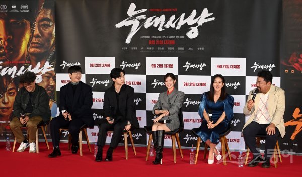 29일 서울 CGV용산에서 열린 영화 ‘늑대사냥’ 프로젝트 보고회에서 배우 고창석이 취재진의 질문에 대답하고 있다.