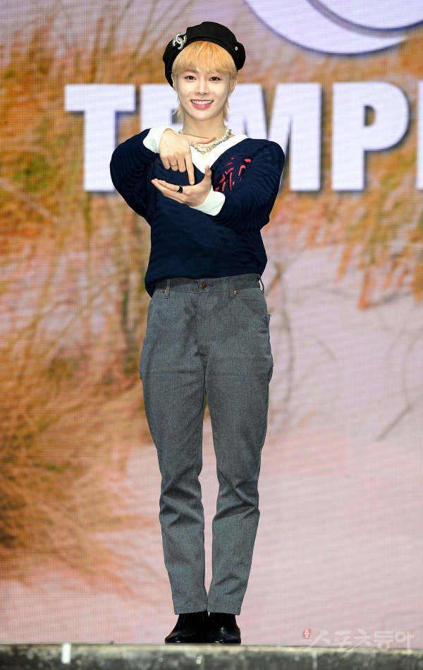 29일 오후 서울 광진구 예스24 라이브홀에서 열린 그룹 템페스트(TEMPEST) 두 번째 미니앨범 ‘샤이닝 업’(SHINING UP)쇼케이스에 참석한 한빈이 카메라를 향해 포즈를 취하고 있다.
