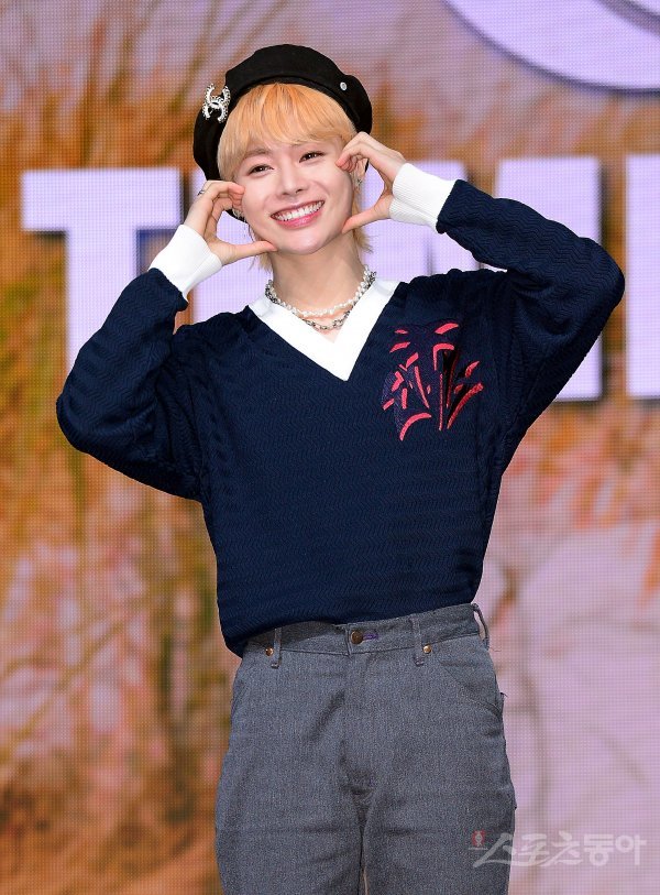 29일 오후 서울 광진구 예스24 라이브홀에서 열린 그룹 템페스트(TEMPEST) 두 번째 미니앨범 ‘샤이닝 업’(SHINING UP)쇼케이스에 참석한 한빈이 카메라를 향해 포즈를 취하고 있다.