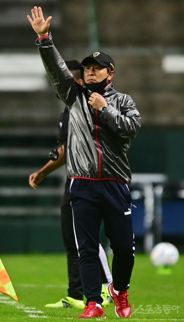 29일 전주월드컵경기장에서 열린 ‘하나원큐 K리그1 2022’ 전북 현대와 포항 스틸러스의 경기에서 포항 김기동 감독의 득점 취소 선언에 심판에게 어필하고 있다.