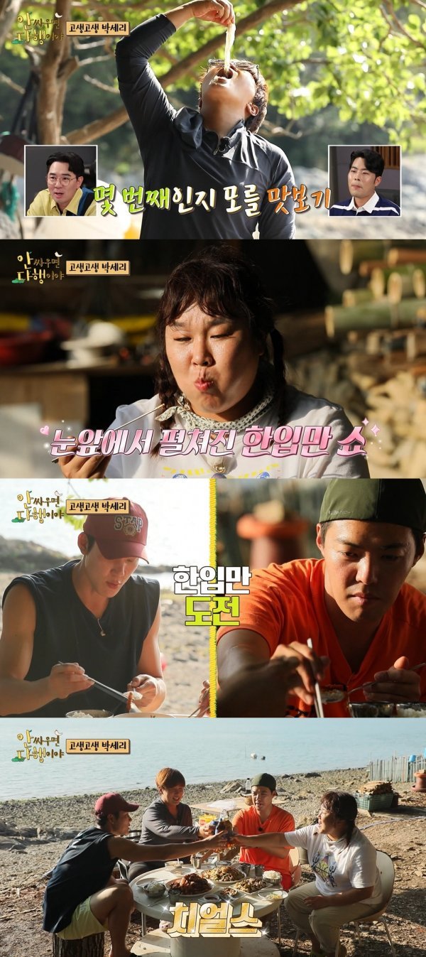 완성된 해물 잡채, 해물 두루치기, 전복회, 문어·소라 숙회 등을 시식하는 멤버들의 먹방과 김민경의 '한입만' 기술을 전수받는 강남, 박태환의 모습도 시청자들의 시선을 집중시켰다.