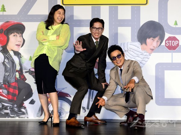 30일 오전 서울 광진구 롯데시네마 건대입구점에서 열린 영화 ‘컴백홈’ 제작보고회에 참석한 라미란, 송새벽, 이범수가 포즈를 취하고 있다.