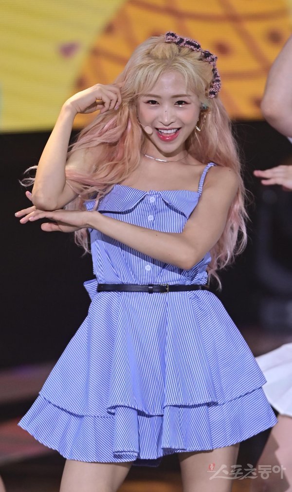 가수 김채원이 30일 서울 마포구 상암동 SBS프리즘타워에서 열린 SBS MTV 음악 프로그램 ‘더쇼’ 생방송에서 무대를 펼치고 있다.