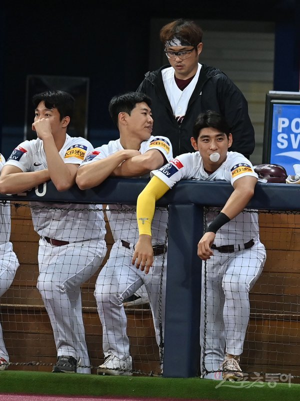 30일 서울 고척스카이돔에서 ‘2022 신한은행 MY CAR KBO리그’ 롯데 자이언츠와 키움 히어로즈 경기가 열렸다. 선발 출전하지 않은 키움 이정후가 더그아웃에서 경기를 바라보고 있다.