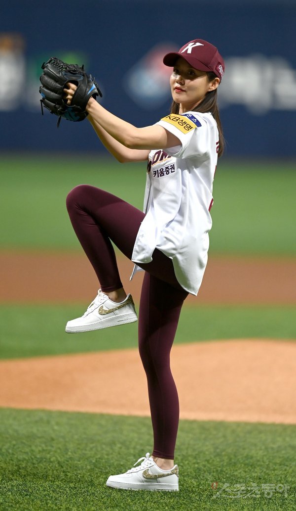 30일 서울 고척스카이돔에서 ‘2022 신한은행 MY CAR KBO리그’ 롯데 자이언츠와 키움 히어로즈 경기가 열렸다. 경기 전 배우 강세정이 시구를 하고 있다.