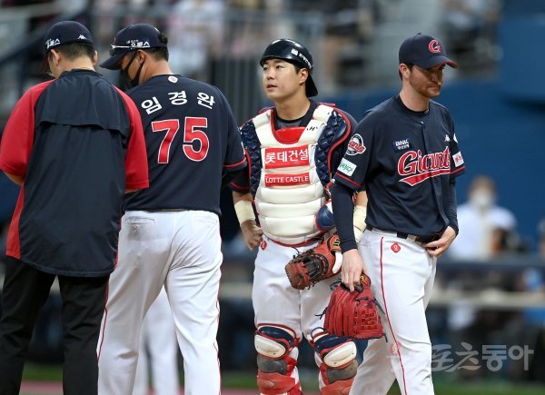 30일 서울 고척스카이돔에서 ‘2022 신한은행 MY CAR KBO리그’ 롯데 자이언츠와 키움 히어로즈 경기가 열렸다. 선발 투수로 등판한 롯데 반즈가 5회말 1사 만루 상황에서 강판되고 있다.