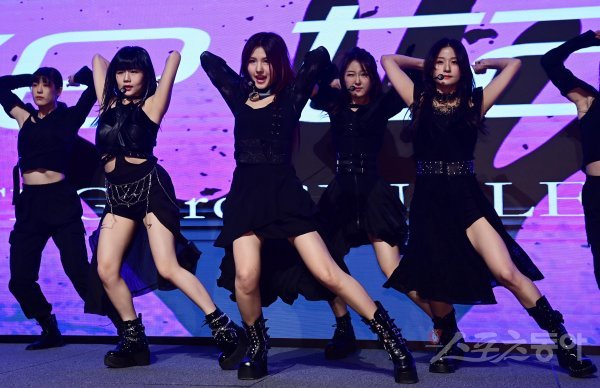 그룹 프리티지가 31일 서울 강남구 삼성동 슈피겐홀에서 열린 세 번째 싱글 앨범 ‘LOVE TAKER(러브 테이커)‘ 발매 기념 쇼케이스에서 동명의 타이틀곡 무대를 펼치고 있다.