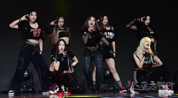 그룹 빌리(Billie)가 31일 서울 광진구 광장동 예스24라이브홀에서 열린 미니앨범 3집 ‘the Billage of perception: chapter two’ 발매 기념 쇼케이스에서 타이틀곡 ‘RING ma Bell (what a wonderful world)‘ 무대를 펼치고 있다.
