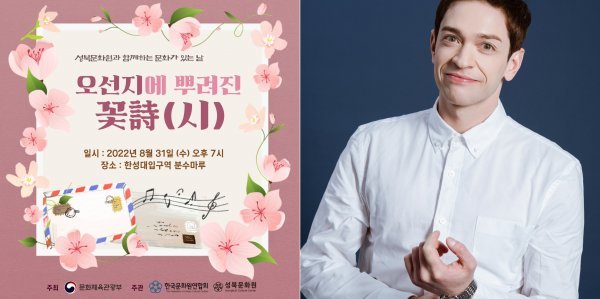 한편 ‘오선지에 뿌려진 꽃詩(시)’는 문화체육관광부가 주최하고, 한국문화원연합회와 성북문화원이 주관하는 ‘성북문화원과 함께하는 문화가 있는 날’의 일환으로 열린다. 성북문화원은 ‘성북에서 다시 핀 꽃’이라는 주제로 이중섭, 김상옥, 금수현 등 문예인들의 예술적 관계와 대표 작품을 강연, 공연, 체험 프로그램 등으로 만날 수 있는 시간을 마련했다.
