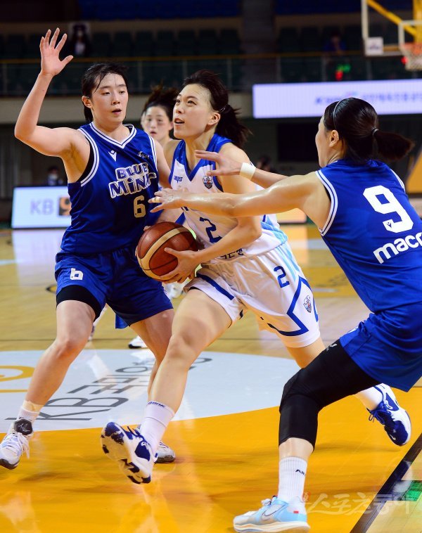 31일 충청북도 청주실내체육관에서 열린 ‘2022 박신자컵 서머리그’ 아산 우리은행과 용인 삼성생명의 결승전에서 우리은행 이재원이 삼성생명 수비 사이로 돌파를 시도하고 있다.