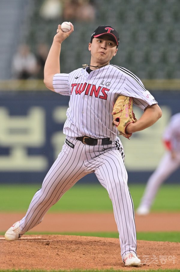 31일 서울 잠실야구장에서 열린 ‘2022 신한은행 SOL KBO리그’ LG 트윈스와 NC 다이노스의 경기에서 선발 투수로 마운드에 오른 LG 이민호가 역투하고 있다.
