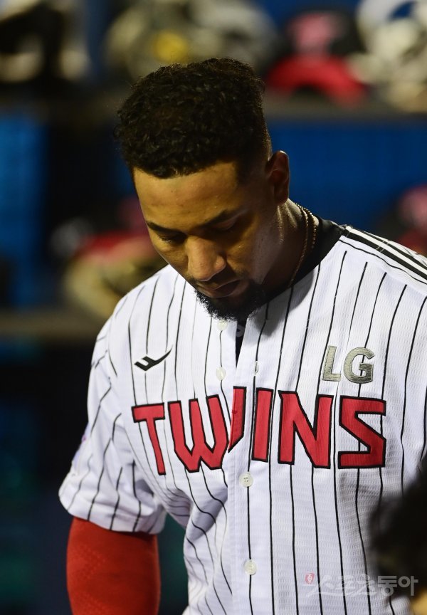 31일 서울 잠실야구장에서 열린 ‘2022 신한은행 SOL KBO리그’ LG 트윈스와 NC 다이노스의 경기에서 6회말 무사 1루 LG 가르시아가 병살타를 쳐낸 후 더그아웃에서 아쉬워하고 있다.