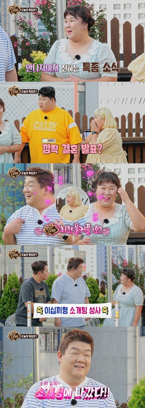 이에 홍윤화, 김태원이 "둘이 사귀어?", "결혼 발표?"라고 물으며 궁금증을 드러냈고, 김민경이 "유민상이 지난주 일요일에 소개팅을 했다. 상대방분이 해달라고 부탁해서 소개팅 안 하는 유민상이 나갔다고 하더라"고 전해 뜨거운 환호성을 이끌어냈다.