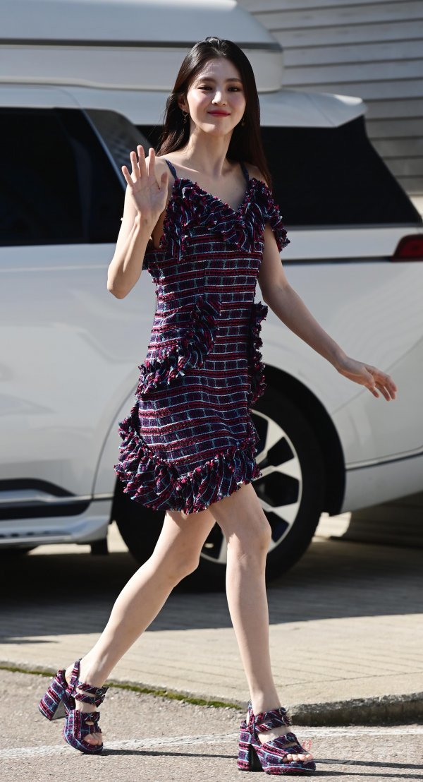 배우 한소희가 1일 서울 성동구 성수동 에스팩토리에서 열린 한 패션 브랜드의 오픈 10주년 기념 패션쇼 포토월에 입장하고 있다.