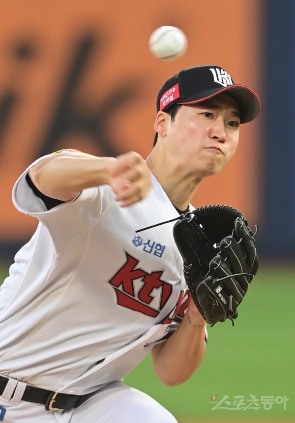 1일 경기도 수원KT위즈파크에서 열린 ‘2022 신한은행 SOL KBO리그’ KT 위즈와 LG 트윈스의 경기에서 선발 투수로 마운드에 오른 KT 엄상백이 역투하고 있다.