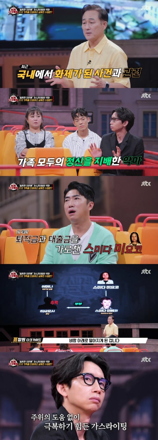 무엇보다 대한민국에서도 가스라이팅 범죄가 성행하고 있는 바, 표창원 다크가이드는 세간을 떠들썩하게 만든 이은해 살인사건을 언급했다. 아내의 비난과 폭언, 폭행에 시달리던 피해자는 결국 안타까운 죽음을 맞이했다. 타인의 심리를 조작해 파멸에 이르게 만든 이은해와 스미다 미요코의 악행은 모두를 분노케 했다.