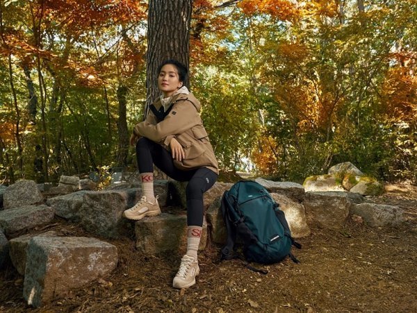 가을 분위기 물씬 풍기는 숲에서의 김태리는 스타일리시한 등산 패션을 선보였다. 작은 얼굴과 긴 다리, 완벽한 비율을 자랑하며 등산 패션을 자신만의 풋풋한 느낌으로 소화했다.