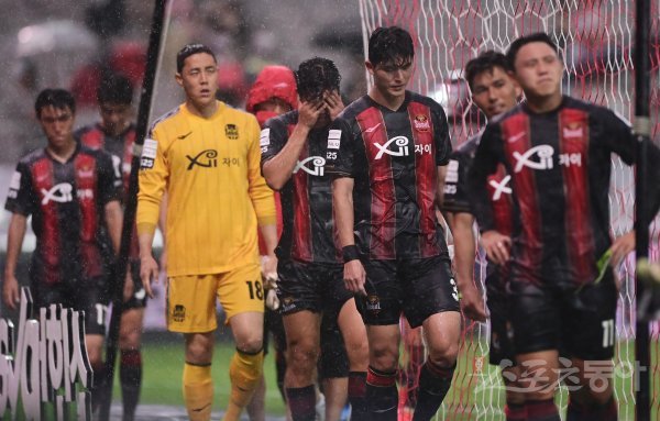 4일 서울월드컵경기장에서 열린 ‘하나원큐 K리그1 2022’ FC 서울과 수원 삼성의 경기에서 수원에 1-3으로 패한 서울 선수들이 아쉬워하고 있다.