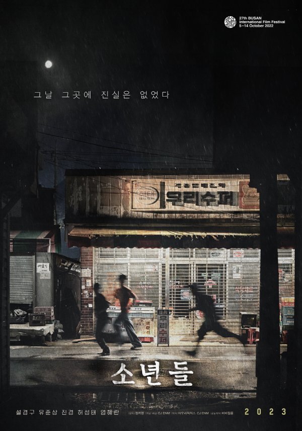 올해 신설된 ‘한국영화의 오늘-스페셜 프리미어’ 섹션에 초대 초청작으로 선정된 '소년들'은 10월 5일(수)부터 10월 14일(금)까지 열리는 제27회 부산국제영화제를 통해 만날 수 있으며 자세한 상영 및 행사 일정은 추후 공개될 예정이다.