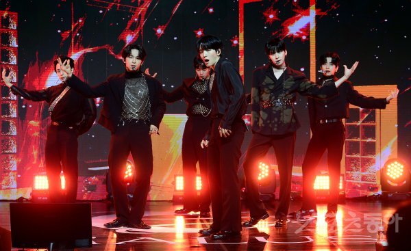 그룹 원어스(ONEUS)가 5일 서울 노원구 광운대 동해문화예술관에서 진행된 미니 8집 ‘MALUS’(말루스)‘ 쇼케이스에서 화려한 공연을 펼치고 있다.