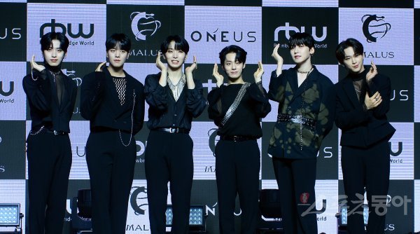 그룹 원어스(ONEUS)가 5일 서울 노원구 광운대 동해문화예술관에서 진행된 미니 8집 ‘MALUS’(말루스)‘ 쇼케이스에서 포토타임을 갖고 있다.
