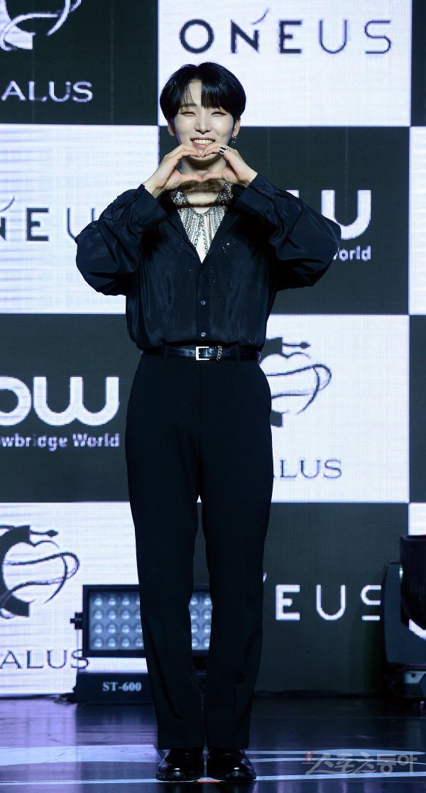 그룹 원어스(ONEUS) 서호가 5일 서울 노원구 광운대 동해문화예술관에서 진행된 미니 8집 ‘MALUS’(말루스)‘ 쇼케이스에서 포토타임을 갖고 있다.