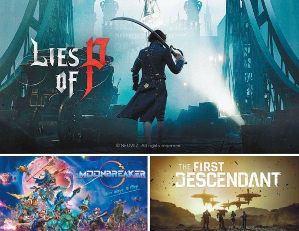 게임사들이 글로벌 시장을 겨냥한 게임을 속속 공개하고 있다. 네오위즈의 ‘P의 거짓’, 넥슨의 ‘퍼스트 디센던트’, 크래프톤의 ‘문브레이커’(위부터 시계방향). 사진제공|네오위즈·넥슨·크래프톤