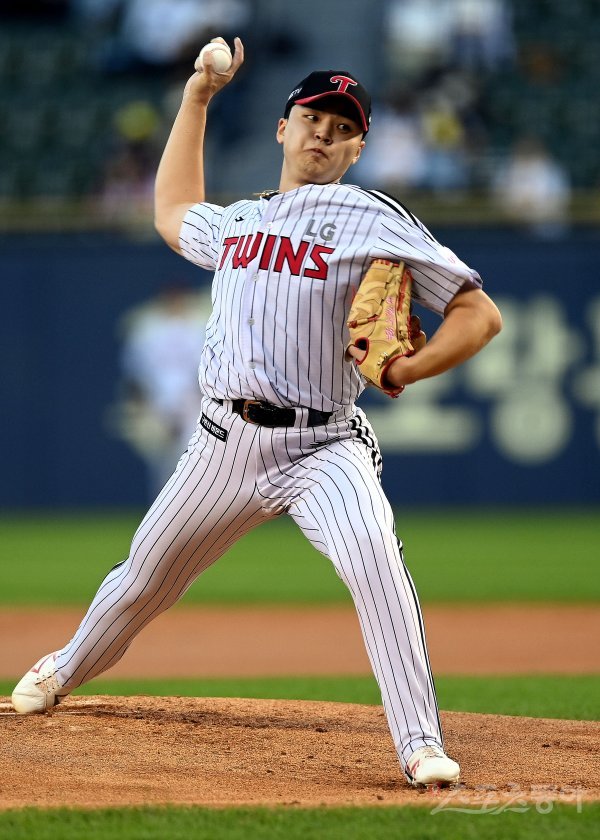 6일 서울 잠실야구장에서 ‘2022 신한은행 SOL KBO리그’ LG 트윈스와 SSG 랜더스의 경기가 열렸다. LG 선발투수 이민호가 힘차게 볼을 던지고 있다.