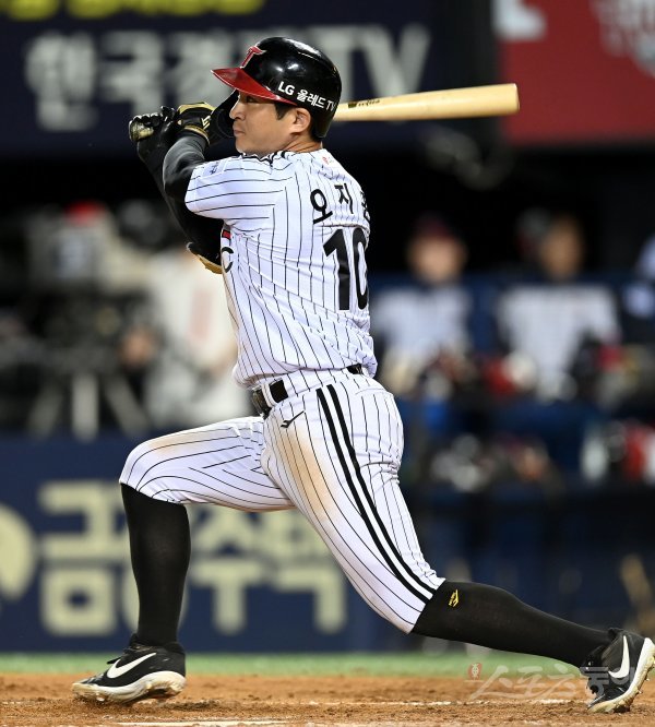 6일 서울 잠실야구장에서 ‘2022 신한은행 SOL KBO리그’ LG 트윈스와 SSG 랜더스의 경기가 열렸다. 4회말 1사 만루에서 LG 오지환이 만루홈런을 쏘아 올리고 있다.