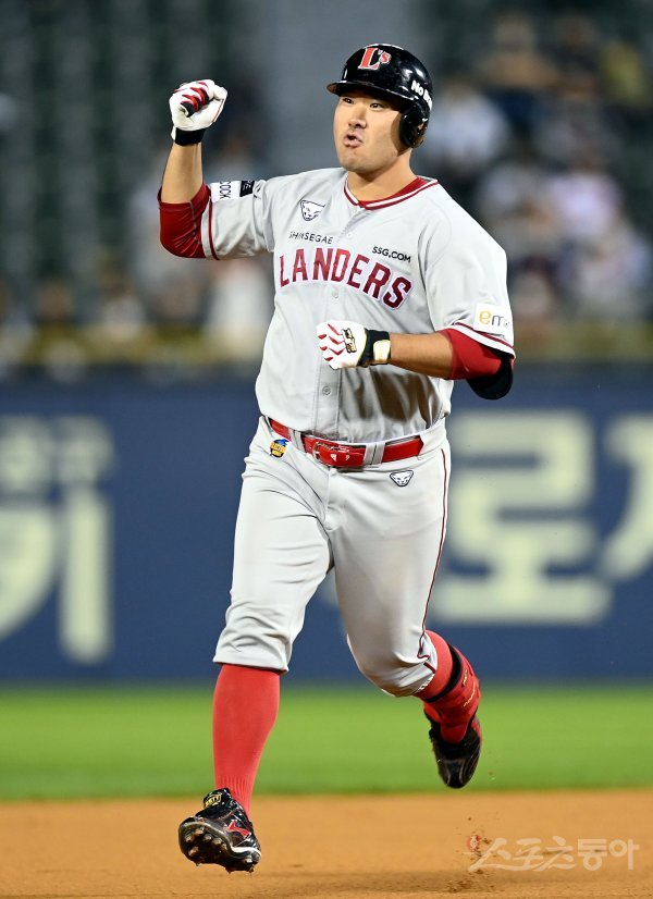 6일 서울 잠실야구장에서 ‘2022 신한은행 SOL KBO리그’ LG 트윈스와 SSG 랜더스의 경기가 열렸다. 6회초 1사 1, 2루에서 SSG 이재원이 3점 홈런을 쏘아 올린 후 세리머니를 펼치고 있다.