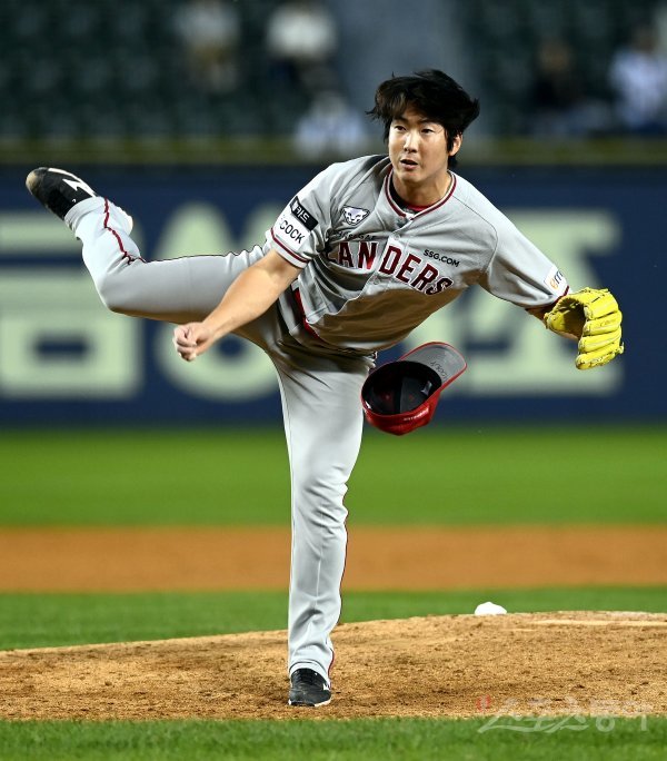 6일 서울 잠실야구장에서 ‘2022 신한은행 SOL KBO리그’ LG 트윈스와 SSG 랜더스의 경기가 열렸다. 9회말 무사에서 SSG 문승원이 구원 등판해 볼을 던지고 있다.