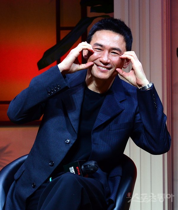 7일 서울 역삼동 조선팰리스 서울강남에서 열린 넷플릭스 ‘수리남’ 제작발표회에 참석한 황정민이 인터뷰도중 포즈를 취하고 있다.