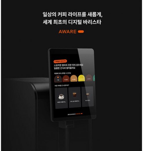 브라운백(대표 손종수) 세계 최초의 디지털 바리스타 ‘브라운백 어웨어(BROWNBAG AWARE, 이하 어웨어)를 공개했다. 디지털 바리스타란 커피를 내리고 마시는 커피 경험의 전반을 디지털화한 전자동 커피 머신을 말한다. 국내 스타트업의 기술이 세계 최초로 빅데이터를 분석해 고객의 취향에 맞게 커피를 맞춤형으로 제공할 수 있게 한 것이다.