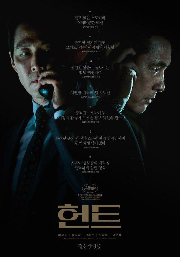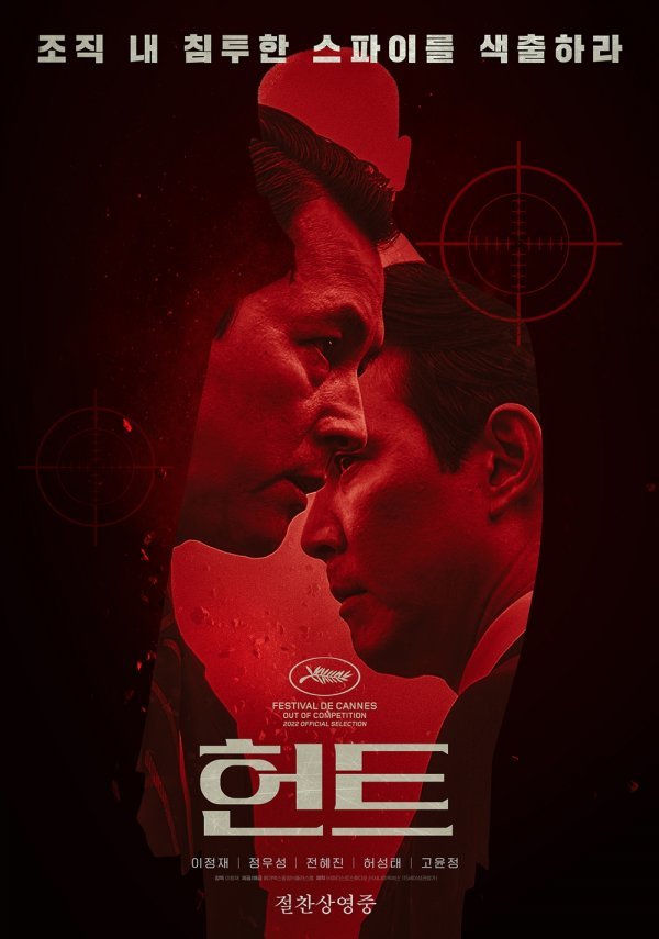‘헌트’는 조직 내 숨어든 스파이를 색출하기 위해 서로를 의심하는 안기부 요원 ‘박평호’와 ‘김정도’가 ‘대한민국 1호 암살 작전’이라는 거대한 사건과 직면하며 펼쳐지는 첩보 액션 드라마.