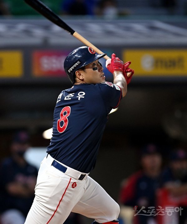 롯데 자이언츠 주장 전준우(36)는 6일 울산 KIA 타이거즈전에서 4-3으로 역전한 8회말 무사 1·3루서 내야안타를 쳤다. 지난달 26일 사직 삼성 라이온즈전 이후 35타석만의 안타였다. 래리 서튼 롯데 감독은 7일 “(잭 렉스의) 결승타보다 전준우의 안타 때 덕아웃 분위기가 더 좋았다”며 웃었다.