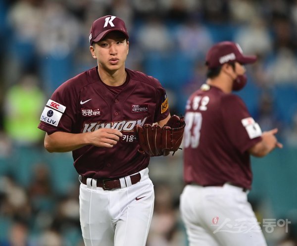 7일 대구 삼성라이온즈파크에서 열린 ‘2022 신한은행 SOL KBO리그’ 삼성 라이온즈와 키움 히어로즈의 경기에서 3회말 무사 1, 2루 키움 주승우가 마운드를 내려오고 있다.