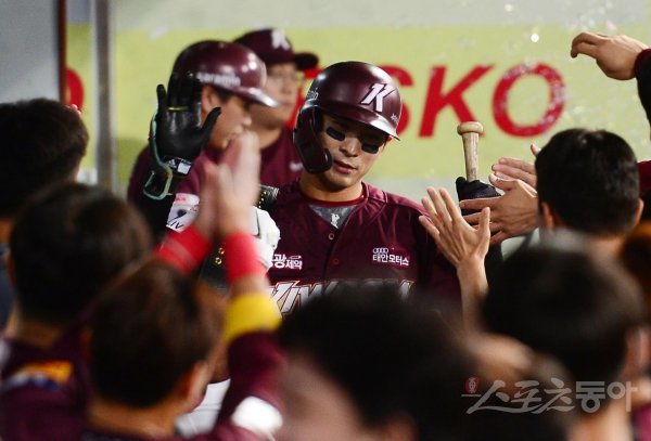7일 대구 삼성라이온즈파크에서 열린 ‘2022 신한은행 SOL KBO리그’ 삼성 라이온즈와 키움 히어로즈의 경기에서 7회초 무사 키움 이정후가 동점 우월 솔로 홈런을 친 후 더그아웃에서 동료들의 축하를 받고 있다.