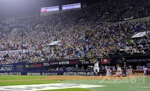 7일 서울 잠실야구장에서 ‘2022 신한은행 SOL KBO리그’ LG 트윈스와 SSG 랜더스의 경기가 열렸다. 1-2위 맞대결을 맞아 야구팬들이 응원을 펼치고 있다.