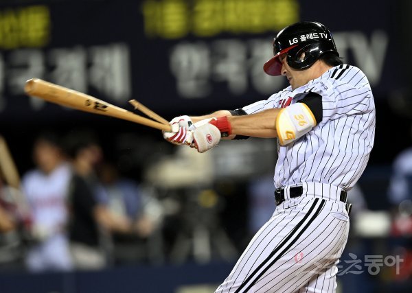 7일 서울 잠실야구장에서 ‘2022 신한은행 SOL KBO리그’ LG 트윈스와 SSG 랜더스의 경기가 열렸다. 7회말 2사 2루에서 LG 대타 이형종이 1타점 역전 적시타를 날리고 있다.