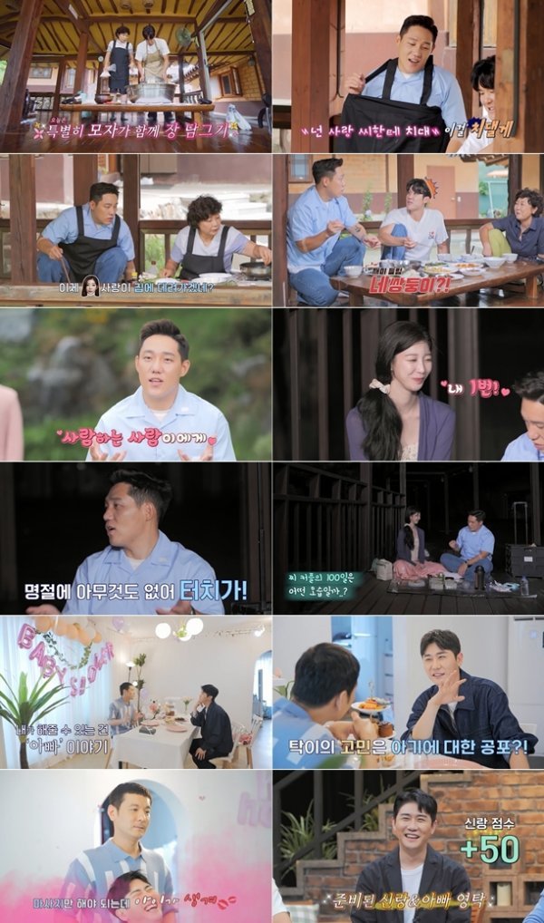 먼저 박태환은 본가에서 어머니와 함께 고추장을 담그며 어머니의 정성과 사랑을 새삼 깨닫는 시간을 가졌다. 뒤이어 모태범도 깜짝 방문한 상황에서 박태환의 어머니는 송편 반죽거리를 제공하며 명절음식 만들기의 시작을 알렸다. 이에 박태환은 반죽을 ‘퍽’ 소리 나게 때리면서 “태범이 넌 사랑씨한테 치대. 난 이걸 치댈게”라고 말해 폭소를 안겼다. 잠시 후 송편을 다 만든 세 사람은 전 부치기에 돌입했다. 이때 박태환 어머니는 모태범에게 “이제 명절에 (임)사랑이를 집에 데려가겠네?”라고 물었고, 모태범은 “좋죠~ 같이 가서 밥 먹고…”라고 긍정의 시그널을 보내 모두를 설레게 만들었다.