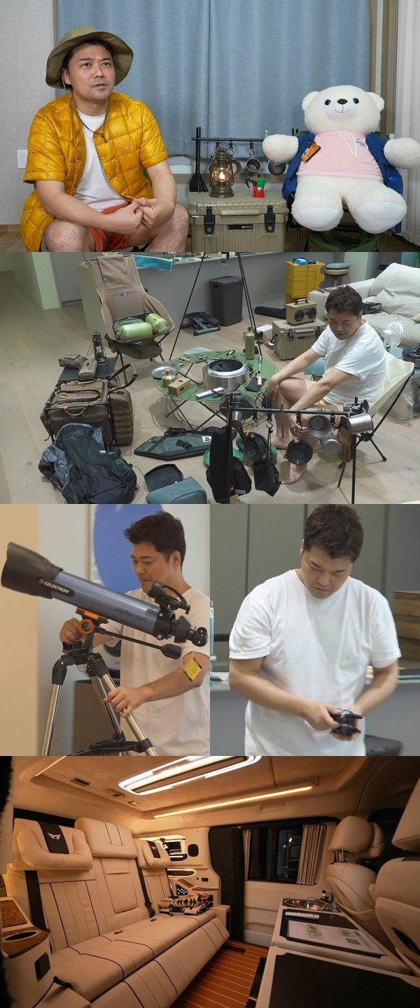공개된 사진 속에는 생애 첫 캠핑을 준비하는 전현무의 모습이 포착됐다. 그의 집 거실을 점령한 수많은 캠핑 장비들에 이목을 집중된다.