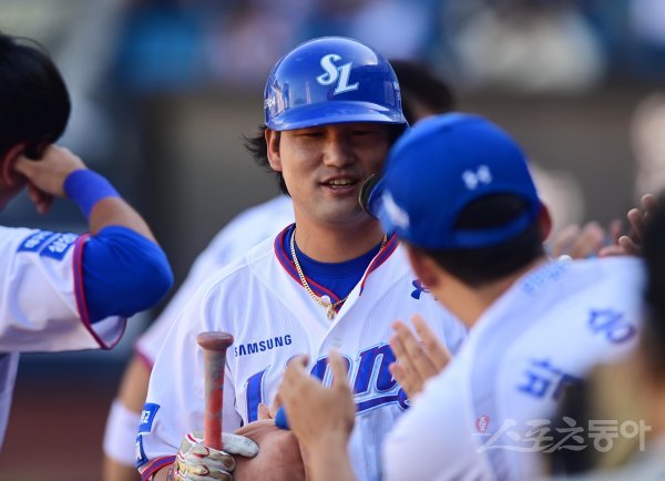 9일 대구 삼성라이온즈파크에서 열린 ‘2022 신한은행 SOL KBO리그’ 삼성 라이온즈와 롯데 자이언츠의 경기에서 5회말 1사 1루 삼성 김상수가 좌월 투런 홈런을 친 후 더그아웃에서 동료들의 축하를 받고 있다.