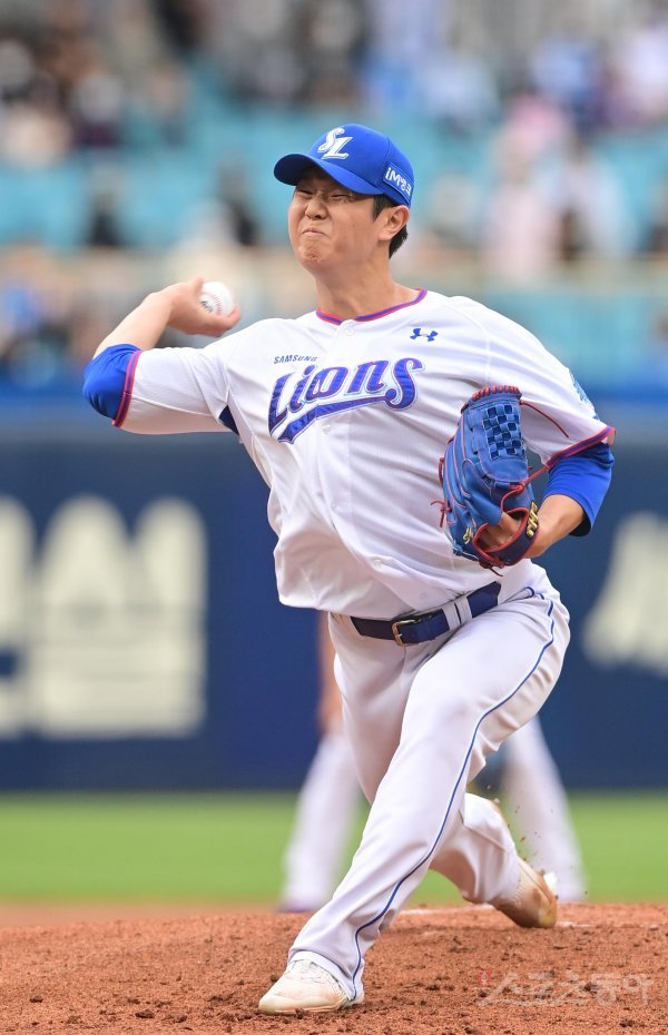 10일 대구 삼성라이온즈파크에서 열린 ‘2022 신한은행 SOL KBO리그’ 삼성 라이온즈와 LG 트윈스의 경기에서 선발 투수로 마운드에 오른 최하늘이 역투하고 있다.