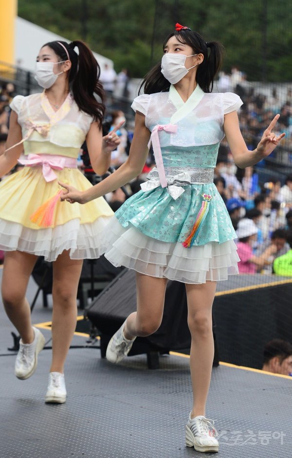 10일 대구 삼성라이온즈파크에서 열린 ‘2022 신한은행 SOL KBO리그’ 삼성 라이온즈와 LG 트윈스의 경기에서 삼성 이수진 치어리더가 단상에서 공연을 펼치고 있다.