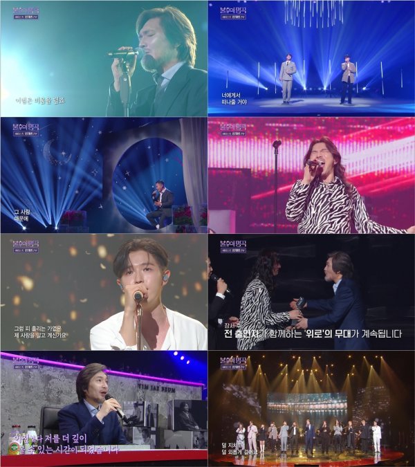 임재범은 “이전보다 저를 조금 더 깊이 들여다 볼 수 있는 방송이었지 않나 싶다. 고맙습니다”라며 ‘불후의 명곡’ 출연 소감을 전했다. 임재범과 후배 아티스트들이 함께 임재범의 신곡 ‘위로’를 부르며 2주에 걸쳐 방송된 ‘불후의 명곡’ 아티스트 임재범 편의 피날레를 알렸다. 임재범을 중심으로 하나된 아티스트들의 따뜻한 음색이 보는 시청자들을 위로하며 벅찬 감동을 선사했다.