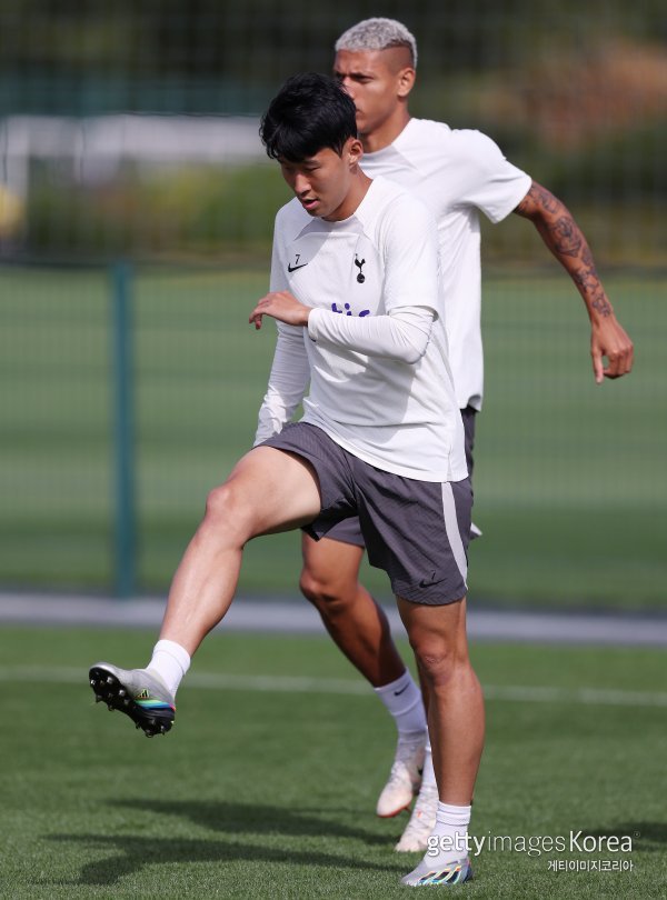 손흥민이 챔피언스리그 D조 조별리그 2차전에 앞서 팀 훈련을 하고 있다. 사진=게티이미지코리아.