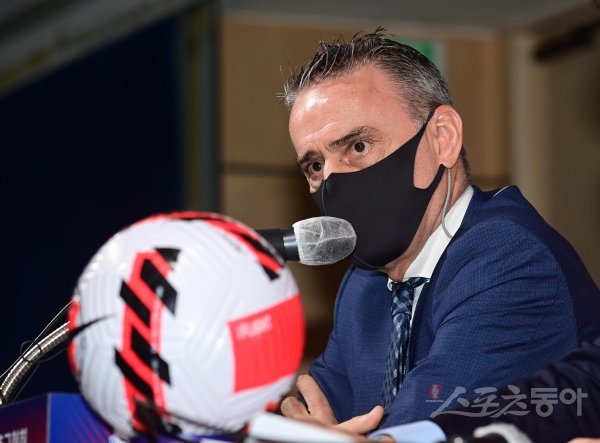 한국축구대표팀 파울루 벤투 감독이 13일 서울 종로구 축구회관에서 열린 9월 친선경기를 대비한 남자대표팀 명단발표 기자회견에서 취재진의 질문에 답하고 있다. 주현희 기자 teth1147@donga.com