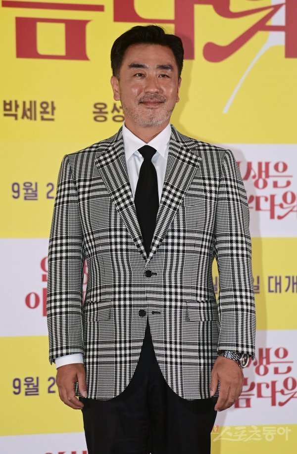배우 류승룡이 13일 서울 송파구 신천동 롯데시네마 월드타워점에서 열린 영화 ‘인생은 아름다워’ 언론시사회에서 포즈를 취하고 있다.
