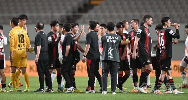 그런데 후반전 도중 들려온 소식은 두 팀 모두를 당혹스럽게 했다. 31라운드까지 7위를 달렸던 수원FC가 이승우의 멀티골을 앞세워 김천 상무를 2-1로 꺾고 승점 44(12승8무12패)를 만들었다. 31라운드에서 승점 42를 쌓아 6위로 도약했던 강원의 자력 그룹A 진입도 어려워졌고, 서울에게는 산술적 가능성과는 별개로 기적이 필요해졌다.