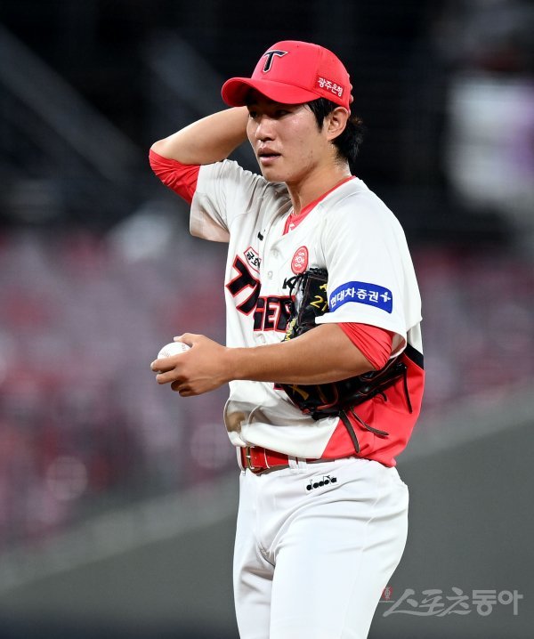 13일 광주 KIA챔피언스필드에서 ‘2022 신한은행 SOL KBO리그’ KIA 타이거즈와 키움 히어로즈의 경기가 열렸다. 9회초 2사 만루에서 연속 밀어내기 볼넷을 허용한 KIA 김정빈이 교체되고 있다.